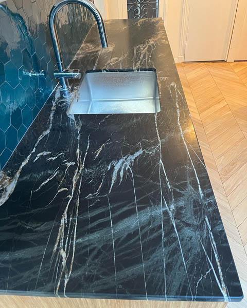 Nous utilisons différents matériaux comme le marbre, le granite, la pierre, l’ardoise et les nouvelles matières non naturelles type Dekton, céramique, quartzite et autres